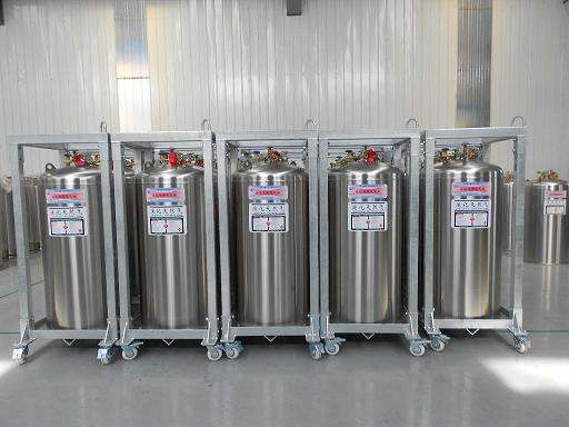 一般使用便攜式液體鋼瓶,即常規高壓液氮罐即可,