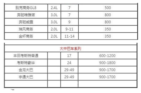 像一般的單位政府用車,這種情況下人數(shù)都比較多,一般的轎車很難滿足需求。不用擔心成都路景租車公司車型10-55座高中低檔大小中巴、大巴車任選,可根據(jù)用車單位的實際需求提供車輛,以下是路景提供的成都單位租車報價表: