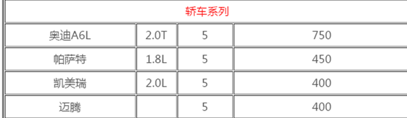 成都租轎車5座報價?以下是部分車型價格表可供參考: